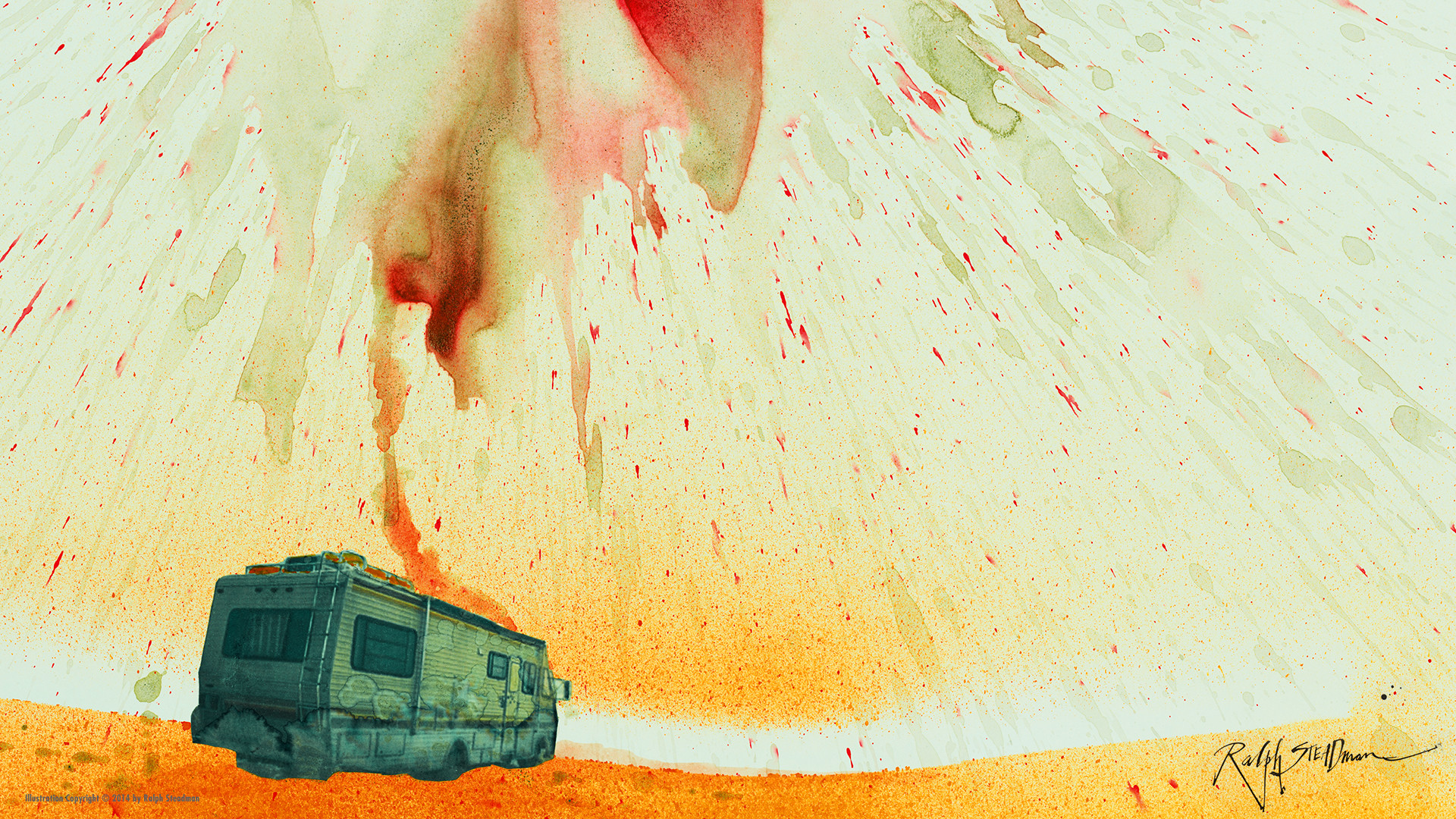 Il utilise les tâches mais il n’en est pas une dans le domaine du dessin, Ralph Steadman. Voici exactement soixante ans, ce caustique britannique publiait son premier travail dans la vénérable revue humoristique Punch. Depuis jamais la force de son trait ne s’est calmée. Il s’est engagé, Ralph Steadman. Contre la guerre, pour la protection des espèces animales. Il a prêté son pinceau à Miles Davis comme Frank Zappa, emballant leurs disques. Dernièrement, il a même participé à une édition collector de la série « Breaking Bad ». Le gars a du goût, du caractère, de l’anarchisme à revendre.